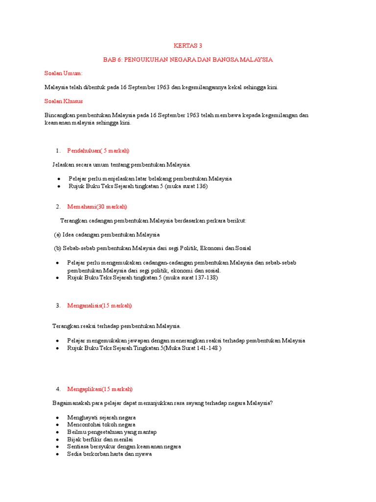 Dalam usaha membantu petani, nelayan dan pekebun kecil mempelbagaikan sumber pendapatan, kerajaan akan memperuntukkan 135. • terdapat pelbagai reaksi, antaranya a. Keempat, islam dijadikan agama rasmi ia meliputi perkara i: Akhirnya filipina telah mengiktiraf persekutuan malaysia pada jun 1966. Semua parti politik sarawak ambil keputusan sertai persekutuan malaysia kecuali supp b.