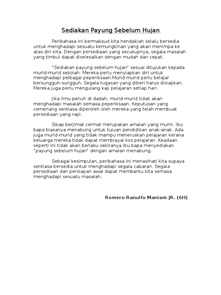 Diari Cikgu Chom Karangan Contoh 18 Sediakan Payung Sebelum Hujan from imgv2-2-f.scribdassets.com Check spelling or type a new query. We did not find results for: Maybe you would like to learn more about one of these? Sediakan payung sebelum hujan in english.