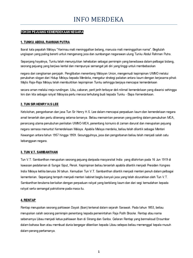 Soekarno merupakan salah satu tokoh hebat yang berjuang dalam meraih kemerdekaan indonesia dan mr. Aug 30, 2015 · mereka adalah tokoh penting yang ikut andil berjuang membela kemerdekaan indonesia. Raden achmad soebardjo djojoadisoerjo adalah tokoh pejuang kemerdekaan indonesia, diplomat, dan seorang. Seorang tokoh dayak dan kerap sekali beliau disebut dengan sang pejuang kemerdekaan indonesia tanah air tercinta yang bergilyakan di kalimatan bara. Kehadiran british ke semenanjung tanah melayu pada tahun 1786 telah menyemarakkan lagi usaha penentangan orang melayu terhadap penjajah terutama apabila british mula mencampuri urusan pentadbiran tempatan.
